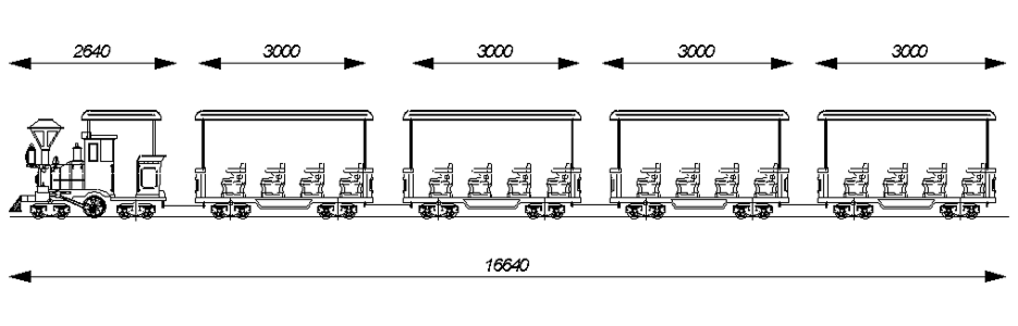 450mmゲージの基本車両に、客車を連結したレール式乗物です。 走行中に様々なイベントを発生させることで、乗客を飽きさせません。